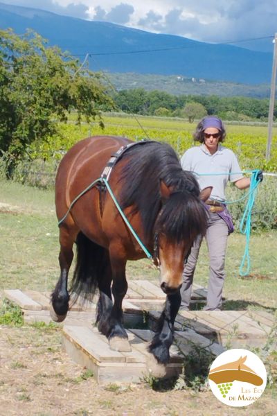 – travail au tonneau pour développer la maîtrise gestuelle des figures techniques, les techniques de montoir et gérer les premières appréhensions du vide et des espaces.